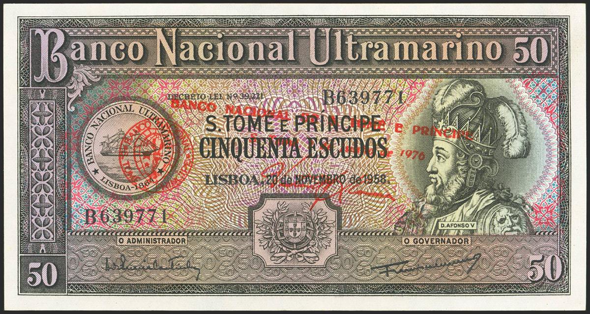 SAINT THOMAS AND PRINCIPE. 50 Escudos. 7 June 1976. Banco Nacional. (Pick: 45). Uncirculated.