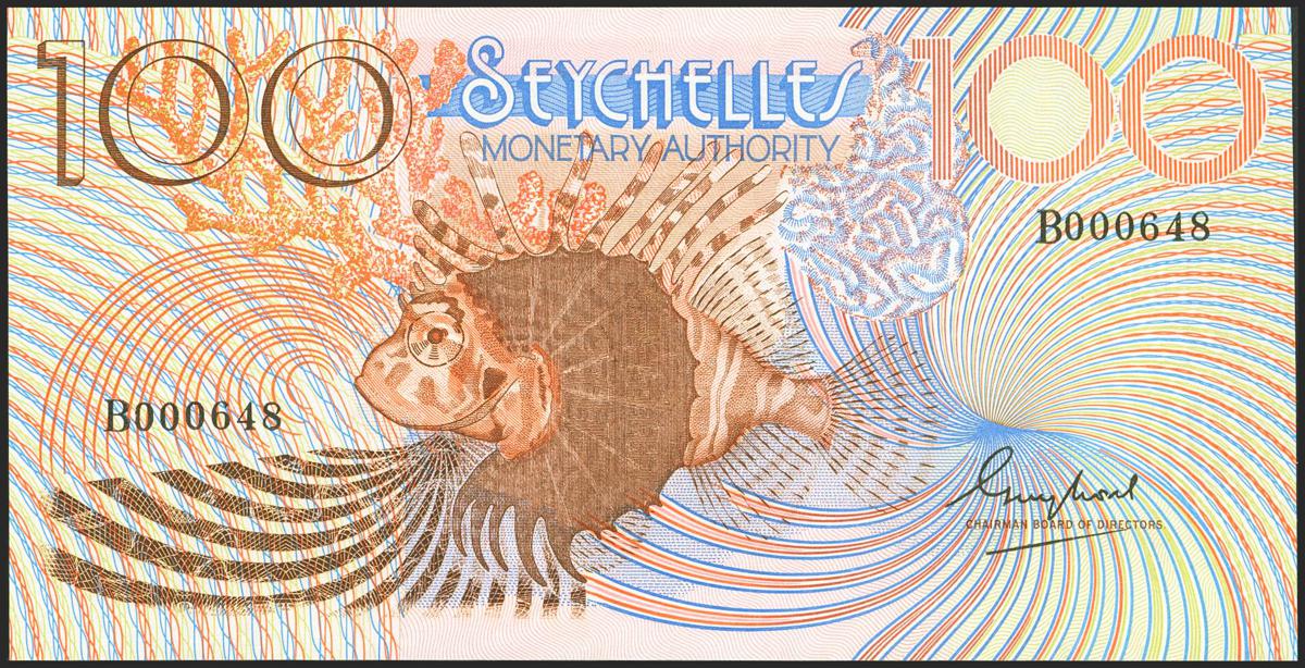 SEYCHELLES. 100 Rupees. (1980ca). Low numeration. Monetary Authority. (Pick: 27). Uncirculated.
