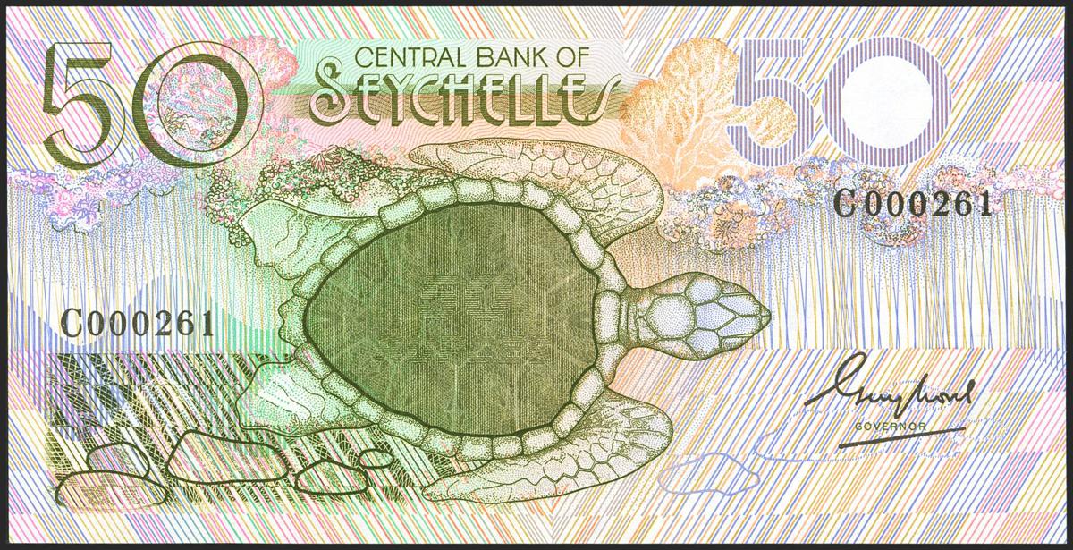 SEYCHELLES. 50 Rupees. (1989ca). Low numeration. Central Bank. (Pick: 30). Uncirculated.