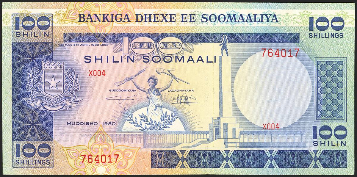 SOMALIA. 100 Shillings. 1980. Central Bank. (Pick: 28). Uncirculated.