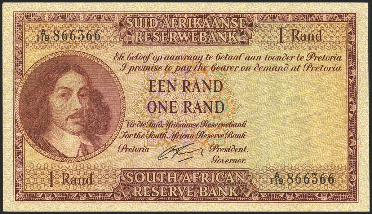 SOUTH AFRICA. 1 Rand. (1962ca). Reserve Bank. (Pick: 103b). Less than Uncirculated.