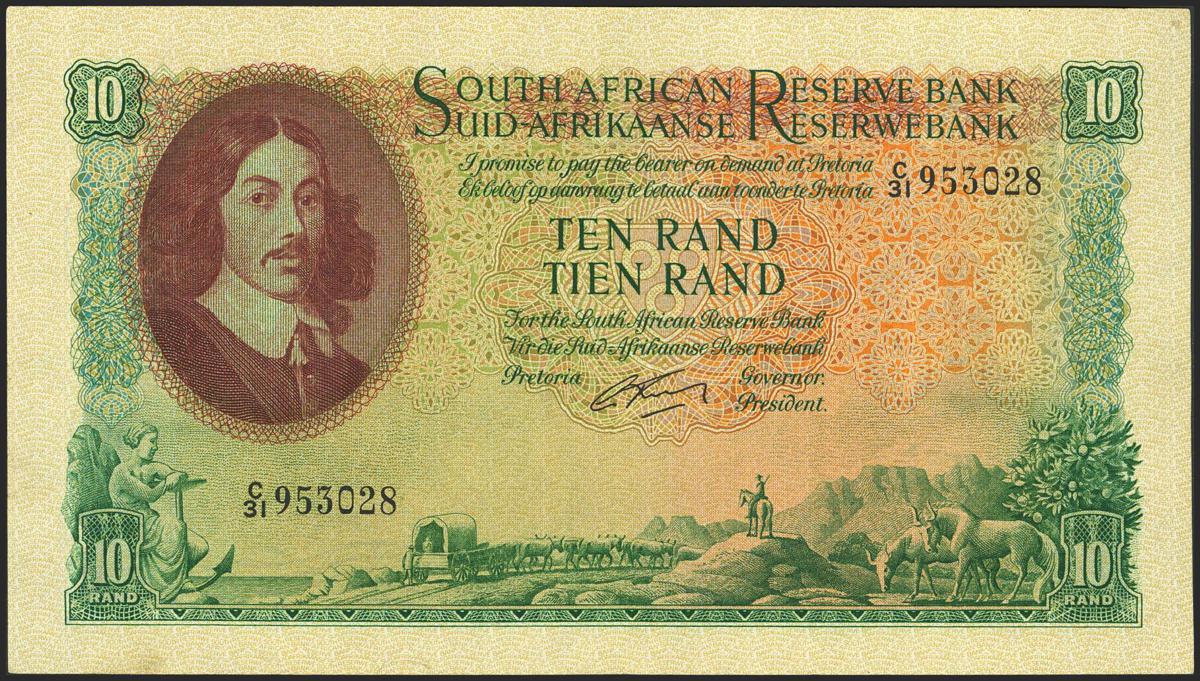 SOUTH AFRICA. 10 Rand. (1965ca). Reserve Bank. (Pick: 107b). More than Very Fine.