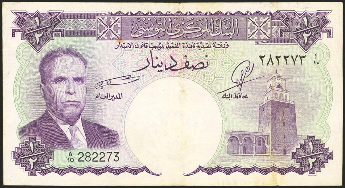 TUNISIA. ½ Dinar. (1958ca). Banque Centrale de Tunisie. (Pick: 57). Very Fine.