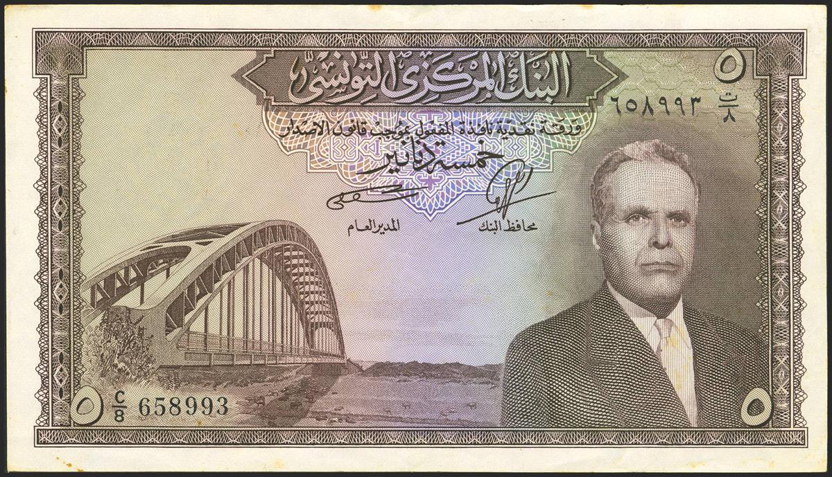 TUNISIA. 5 Dinars. (1958ca). Banque Centrale de Tunisie. (Pick: 59). Very Fine.