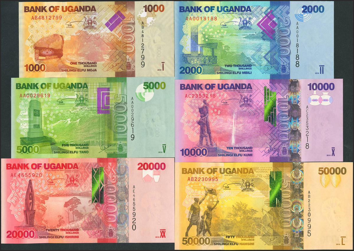 UGANDA. Lot of 6 notes of 1000 Shillings, 2000 Shillings, 5000 Shillings, 10000 Shillings, 20000 Shillings and 50000 Shillings. 2010. Bank of Uganda. (Pick: 49a, 50a, 51a, 52a, 53a, 54a). Uncirculated.