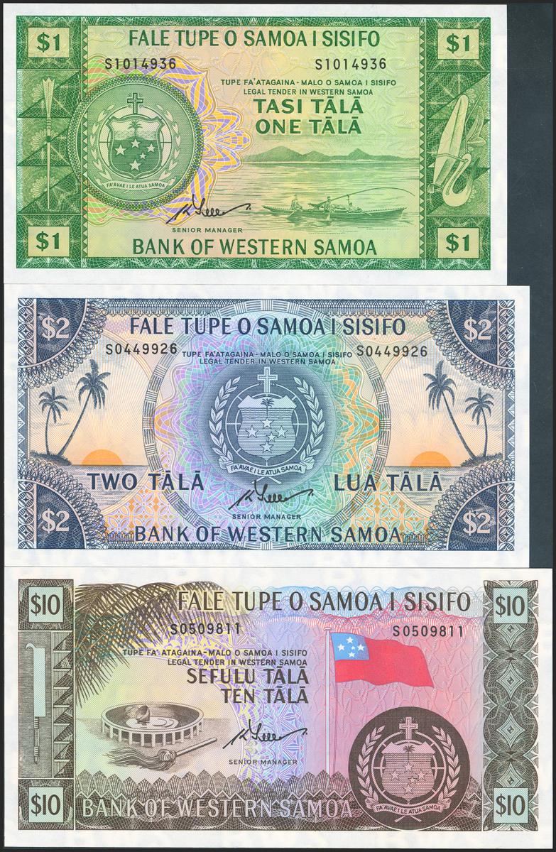 SAMOA. Set of 3 notes of 1 Pound, 2 Pounds and 5 Pounds. (1963ca). Modern reprint. Bank of Western Samoa. (Pick: 13, 14, 15). Uncirculated.