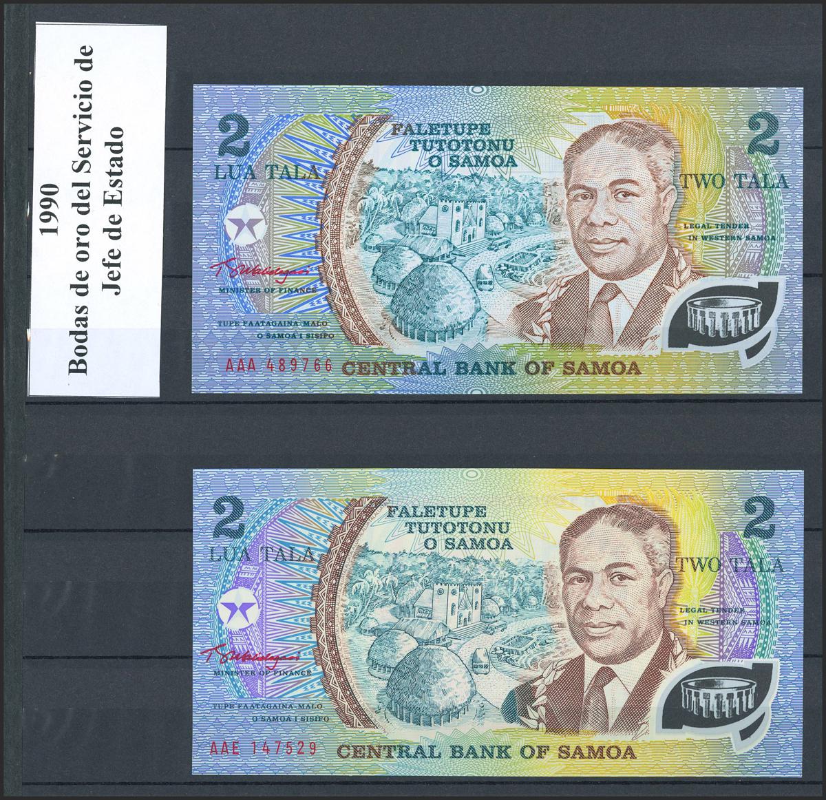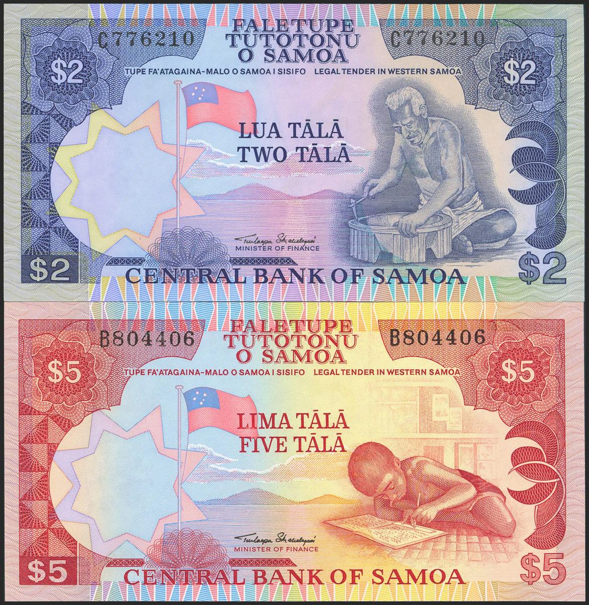 SAMOA. Set of 2 notes of 2 Dollars and 5 Dollars. (1985ca). Central Bank. (Pick: 25, 26). Uncirculated.