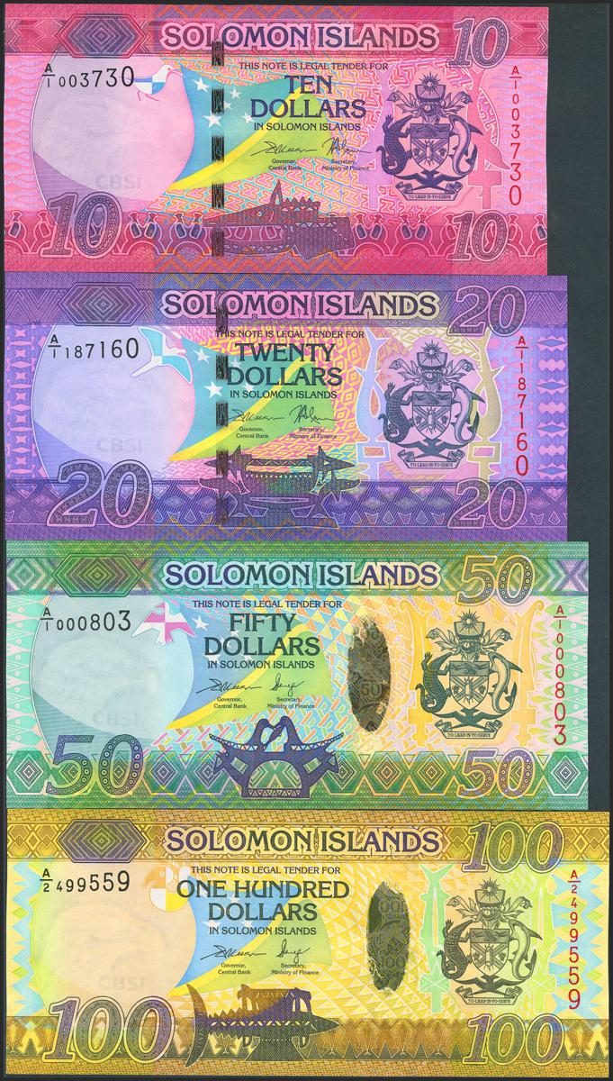 SOLOMON ISLANDS. Set of 4 notes of 10 Dollars, 20 Dollars, 50 Dollars and 100 Dollars. (2019ca). Central Bank. (Pick: 33, 34, 35, 36). Uncirculated.