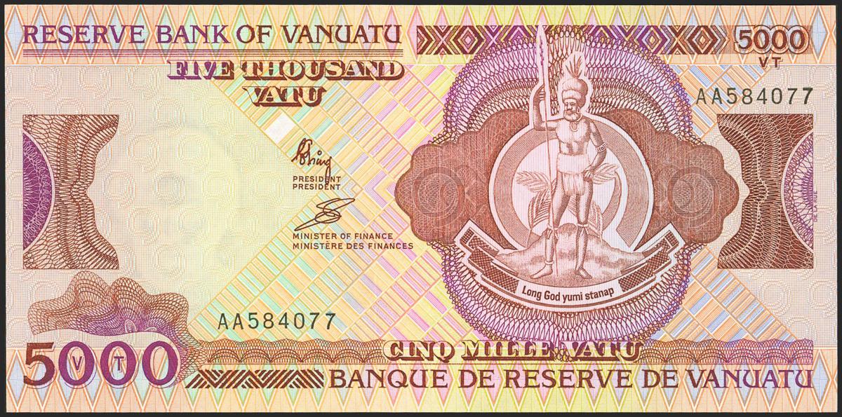 VANUATU. 5000 Vatu. (1993ca). Reserve Bank. (Pick: 7). Unusual in this quality. Uncirculated.
